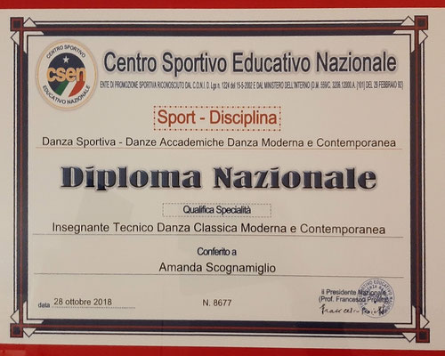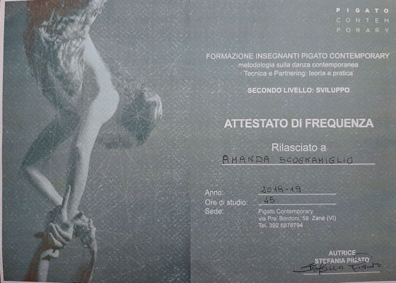 Diplomata insegnante di danza contemporanea Pigato Contemporary
