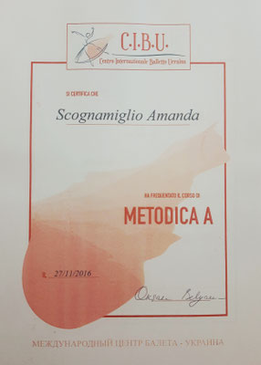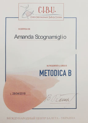 Al C.P.D. studia il metodo Vaganova con Alexandru Frunza, docente dell'Accademia A.I.D.A., con il quale studia privatamente sia come allieva che come insegnante. Si specializza quindi nell'insegnamento della tecnica Vaganova e si diploma presso l'Accademia Ucraina di Balletto. Periodicamente segue Master di Alta Formazione Tecnica Vaganova con il Maestro Riccardo Ricciardi.